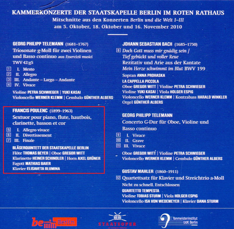 Francis Poulenc: Sextuor pour piano, flute, oboe, clarienette, cor et basson